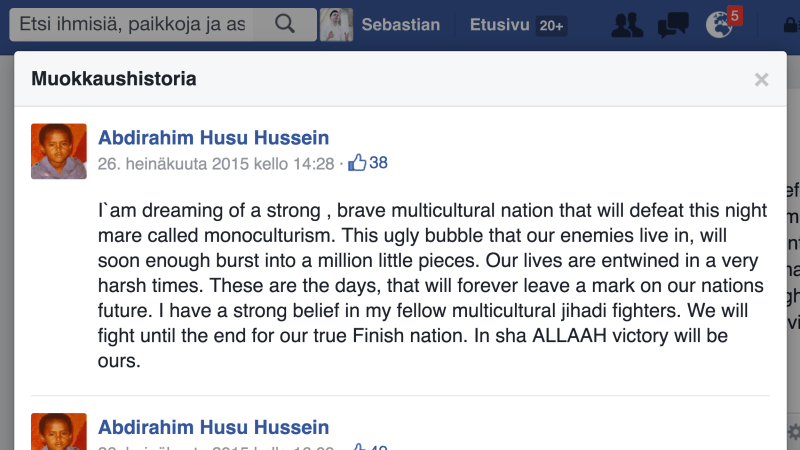 Abdirahim Husu Hussein löysi lopulta poliittisen kotinsa mistäpä muualtakaan kuin demareista. Hän on ennen liittymistään kertonut julkisesti, että median ei pitäisi uutisoida islamistijärjestö isiksen hirmutöistä. Hän on myös kirjoittanut Facebookissa: ”I have a strong belief in my fellow multicultural jihadi fighters. We will fight until the end for our true Finish nation. In sha ALLAAH victory will be ours.”