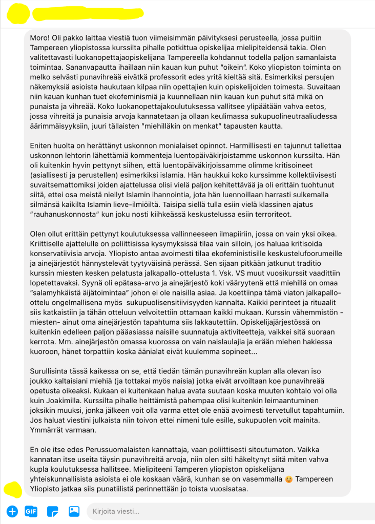 Jos Rinne ei ole valmis nielemään nyt suomalaista arvopohjaamme, hän joutuu tekemään sen neljän vuoden päästä polvillaan. Perussuomalaisten medialehterin alle työntämisestä seurannut uutistykitys on vain yksi esimerkki siitä voimasta, millä tulemme iskemään seuraavat neljä vuotta, jos meidät työnnetään oppositioon. Tällöin hallitus joutuu alkaa vastaamaan paineeseen ja esityksiimme, joita maahanmuuttopolitiikan uudistamiseksi laitamme, tai muuten punavihreällä maahanmuuttopolitiikalla SDP tekee historiansa surkeimman tuloksen neljän vuoden päästä. Kun otetaan vielä huomioon, että Juha Sipilä ei selvinnyt päättäväisellä pääministeriotteellaan Keskustan sataan vuoteen surkeimmasta vaalituloksesta, niin kohtalo on paljon surkeampi Antti Rinteelle, josta ei näy päättäväisyyden häivää, kun hän sanoo tänään yhtä ja huomenna toista. #lihavero #polttomoottorit #hakkuut #ilmasto #nato #laittomastimaassaoleskelevat #listajatkuu